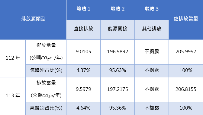註:112~113年碳排數據皆為自行盤查數據,預計於115年進行第三方查證。