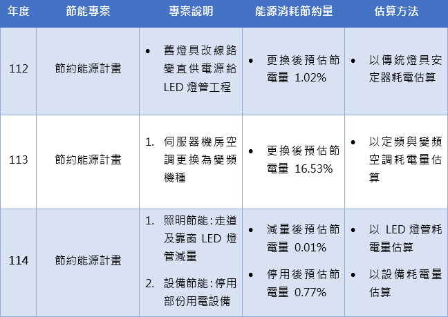達成情形: 112年較113年共計增加用電量1,268度,約增加0.32%年用電量。