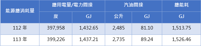 112~113年度整體能源消耗量(用電計算均以本公司為邊界)